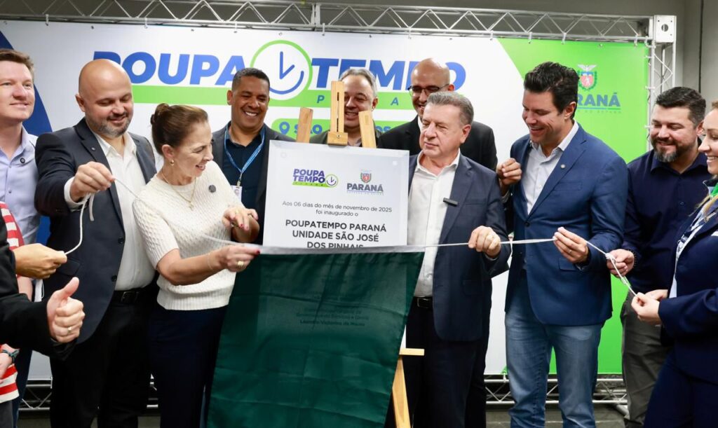 O secretário estadual das Cidades, Guto Silva, participou nesta quinta-feira (6) da inauguração do Poupa Tempo Paraná em São José dos Pinhais, na Região Metropolitana de Curitiba. A nova unidade funciona no piso G1 do Shopping São José e amplia o acesso da população aos serviços públicos do Estado.